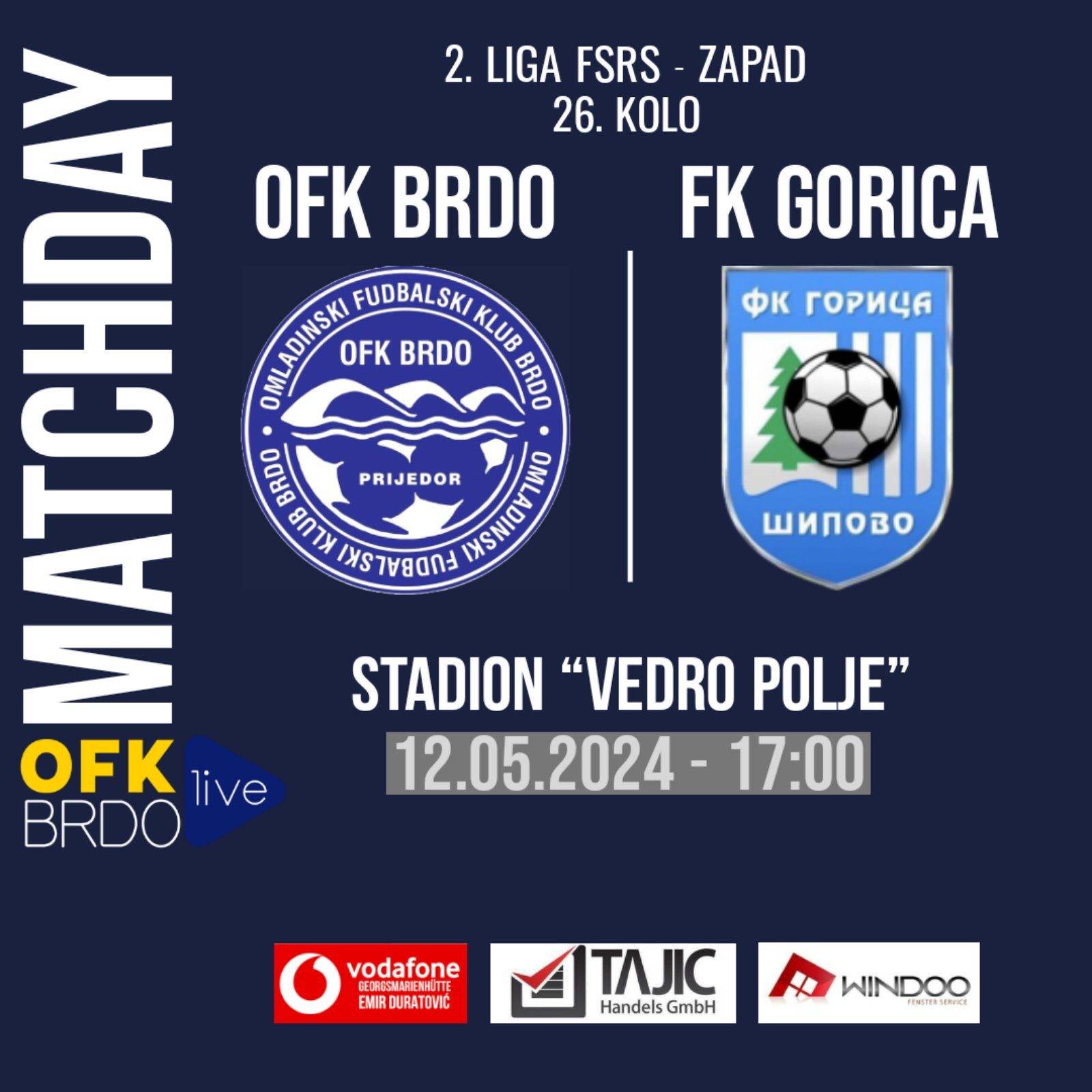 U derbi susretu 26. kola drugoligaškog zapad koji se u nedjelju igra na Vedrom polju u 17:00 sati, snage će odmjeriti OFK Brdo- FK Gorica Šipovo. Nema nikakve sumnje da…